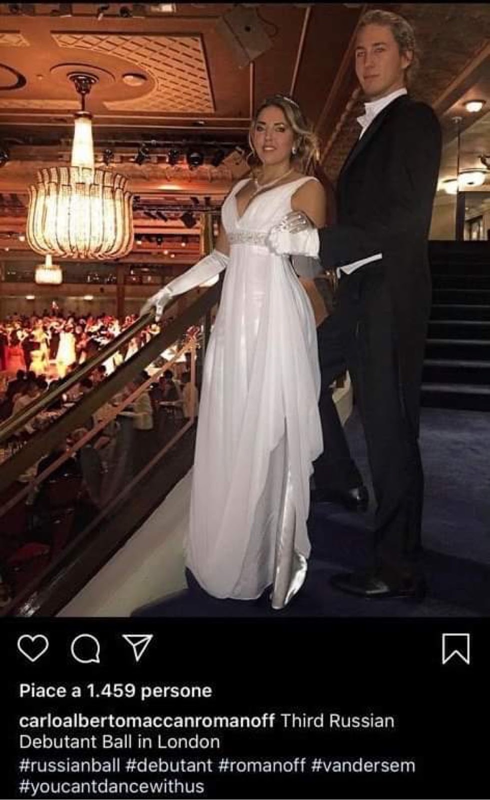 | Screenshot from Mr. Maccan’s Instagram account showing his attendance at a Russian debutantes’ ball in London under the guise of being a Romanoff. |