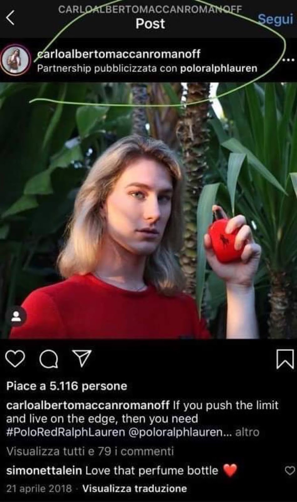 He made his TV debut in an Italian documentary, and is set to star in a new Italian TV show about influencers. His Style and look has been noticed by many different international brands such as Tony Ward Couture, Dolce and Gabbana, G. Inglese, La Perla and many more. Carlo Alberto has been Brand Ambassador of La Perla, Dior Beauty, Ralph Lauren fragrances, G inglese and many more.