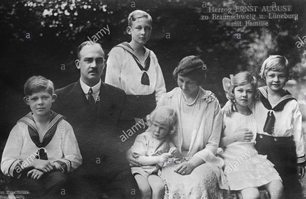 The Duke and Duchess of Braunschweig-Lüneburg with their five children in 1927. Photograph (c) Smith Archive / Alamy Stock Photo.