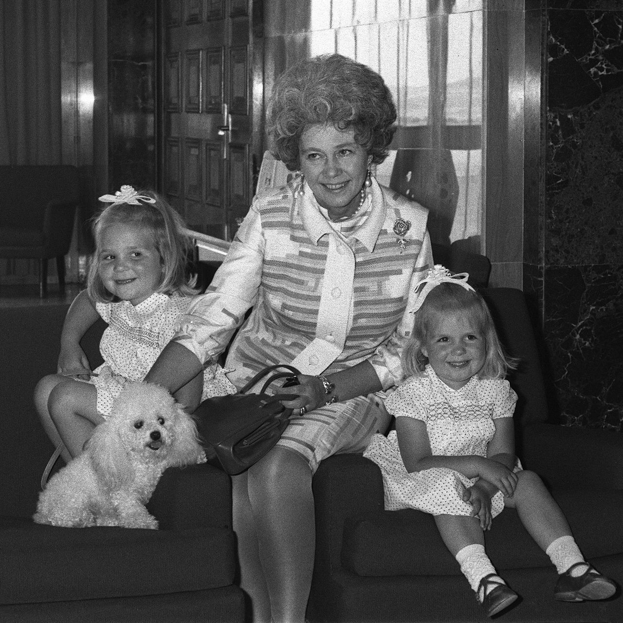 Queen Mother Frederica of Greece with her daughter Princess Sofía and grandchildren, 1968. Infanta Pilar is pictured in the background.