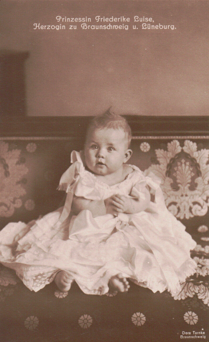 Princess Viktoria Luise holding her daughter Princess Frederica.